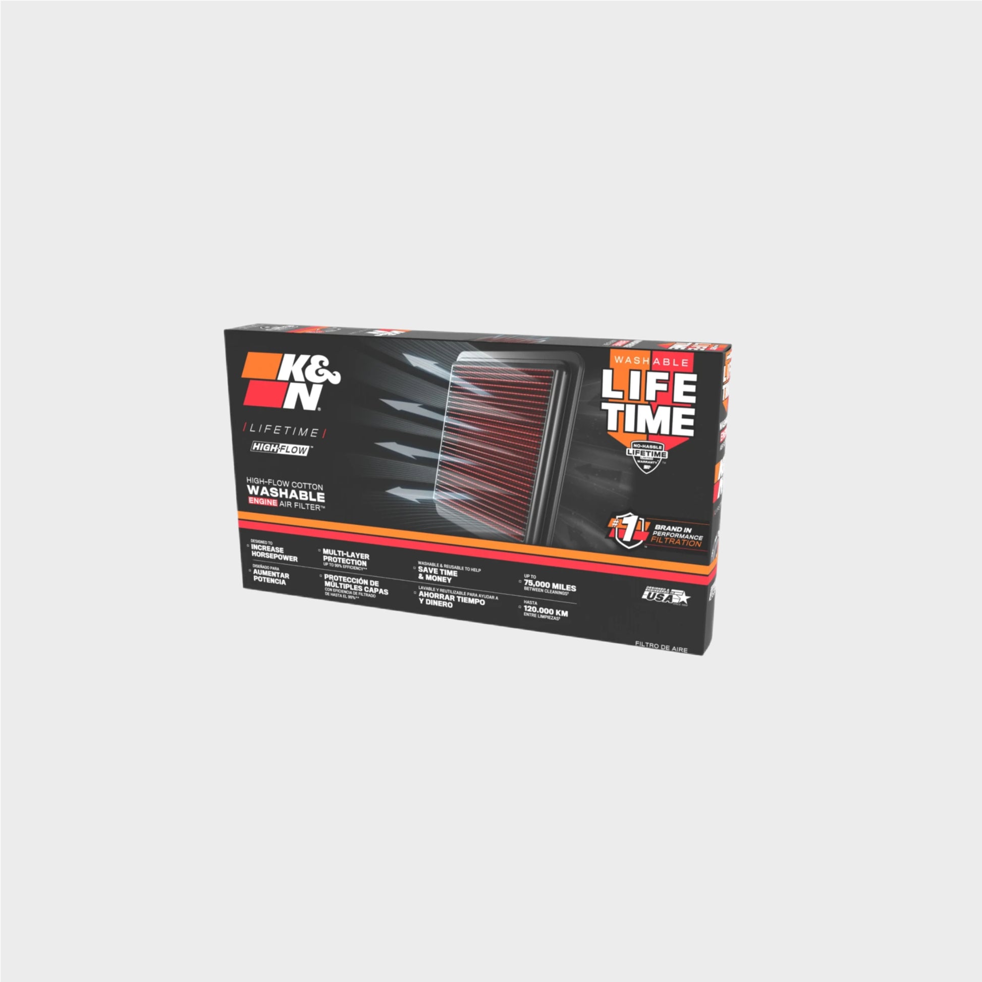 Testado, comprovado e confiável por mais de 50 anos, milhões de condutores confiam nos filtros de ar K&N para proteger seus motores do desgaste prematuro. Com design inovador de mídia de algodão oleada em camadas, este filtro ajuda a capturar sujidade e proteger o motor de contaminantes, oferecendo maior fluxo de ar comparado aos filtros originais, testado em bancada SuperFlow.