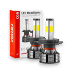 Este modelo H4 COB possui tecnologia de diodos em 4 lados, oferecendo uma distribuição uniforme da luz. O funcionamento é assegurado em tensões de 12/24V, garantindo versatilidade e funcionalidades em diversos veículos.