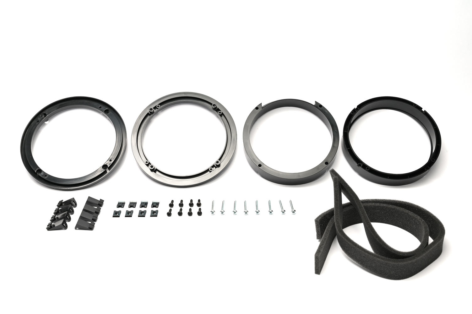 Adaptadores universais para instalação de colunas auto de 165 mm (6.5”) nas portas dianteiras ou traseiras. Perfeitos para substituir as colunas OEM e garantir uma montagem segura e estável.