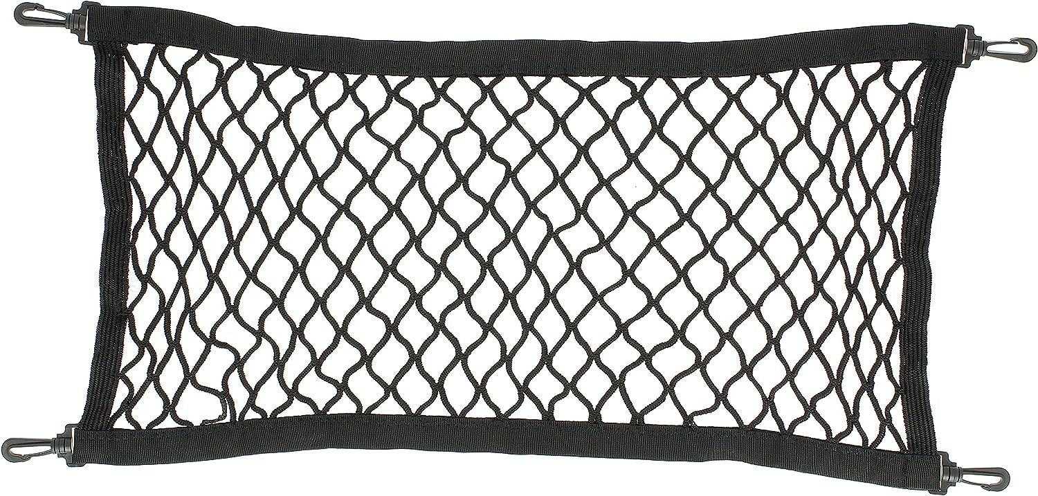 Uma rede de armazenamento universal. Os parafusos estão incluídos neste produto e são fáceis de encaixar. Mede 25 centímetros por 45 centímetros. É de cor preta. Este produto é fabricado pela SUMEX.